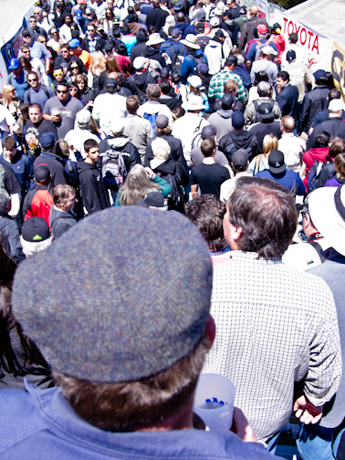 i went to the grand prix (in long beach) last weekend. i am not a race fan but, i thought it would be fun and a great place to shoot, especially people! however, the fact is that i shot very little and my battery died … not usually a problem because i have a back up … but i left my back up at home, out of my camera bag … so when the grand prix got crowded, i was without a camera. to see how crowded it got, see the image below … this picture was taken while coming down the stairs from one of the bridges that allows you to get over the track. i get anxiety from this picture for 2 reasons. 1. i hate crowds and 2. look at all the people available to photograph! UGH!