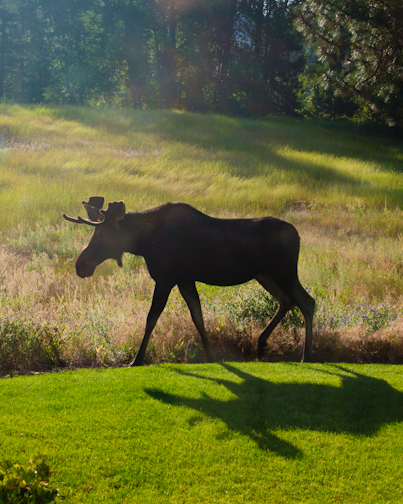 This recent trip we had a few new experiences … First, we saw 3 moose (mooses?), 2 were traveling together (called “the twins” by the farm dwellers) and, presumably, their father, who was solo and massive. The twins are already taller than a standard horse and really did not seem bothered by our gawking … they just stayed to their task of eating all of the leaves they could reach.