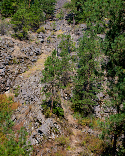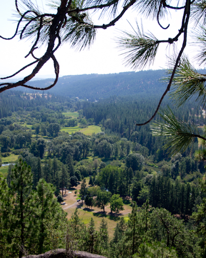 Once we made it to the top, the view made it all worth it. This is taken from the rock, looking down on the farm. The actual house is out of sight and behind the trees, but if you look closely you can see the driveway with a truck on it (middle left), the deflated jumpy-house/water slide and the Little Spokane River in the background.