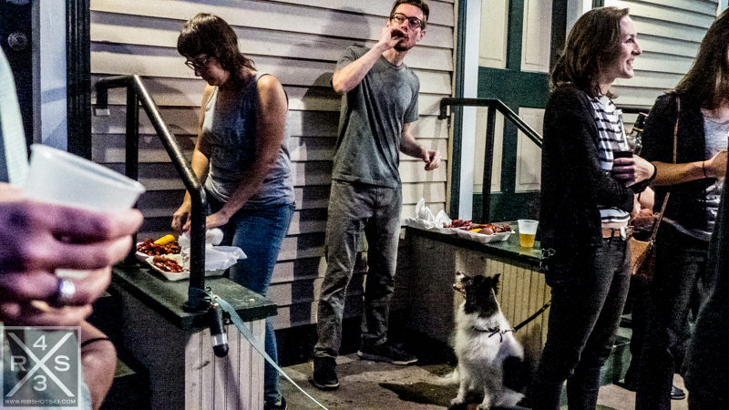 I forgot to include this one and I love this one … We are waiting in line for the crawfish boil at R-Bar looking at others who have already made it through.
